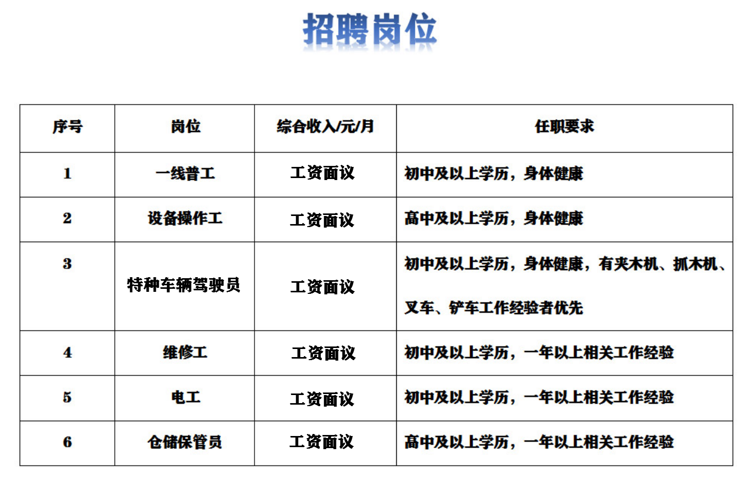 湖北華盛新人造板有限公司員工總數286人,公司中高層管理人員大學本科以上占比95%,形成了一支高素質的、具有高度敬業精神和強大創造力的人才隊伍。企業堅持以人為本,不斷強化聚才、育才、用才的人才理念,以企業良好的管理體制和機制造就人才。通過不斷的選拔和培養,造就了一大批高層次、高技能、高素質的技術、經營管理人才。現應經營生產需要,招聘以下崗位: