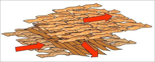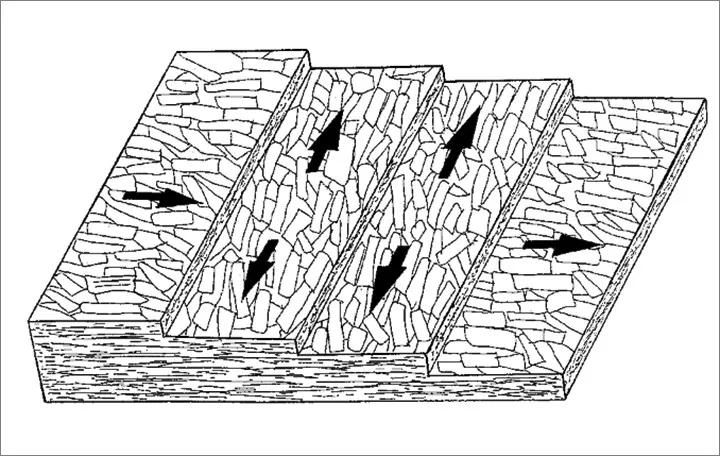 它的表層刨片呈縱向排列,芯層刨片呈橫向排列。這種縱橫交錯的排列,重組了木質紋理結構,徹底消除了木材內應力對加工的影響,使之具有非凡的易加工性和防潮性。由于OSB內部為定向結構,無接頭、無縫隙、裂痕,整體均勻性好,內部結合強度極高,所以無論中央還是邊緣都具有普通板材無法比擬的超強握釘能力。